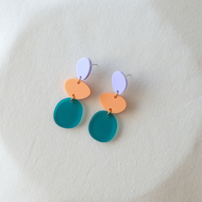 PUNCH.01∙ Lichtgewicht oorbellen in lila, peach en appelblauwzeegroen