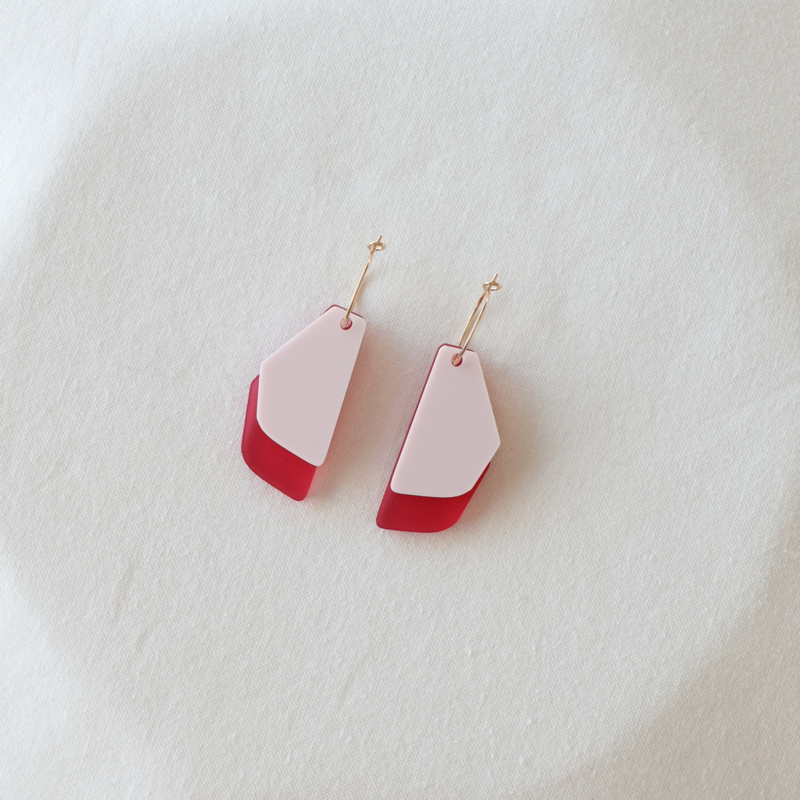 PUNCH.02∙ Lichtgewicht oorbellen in nude en rood