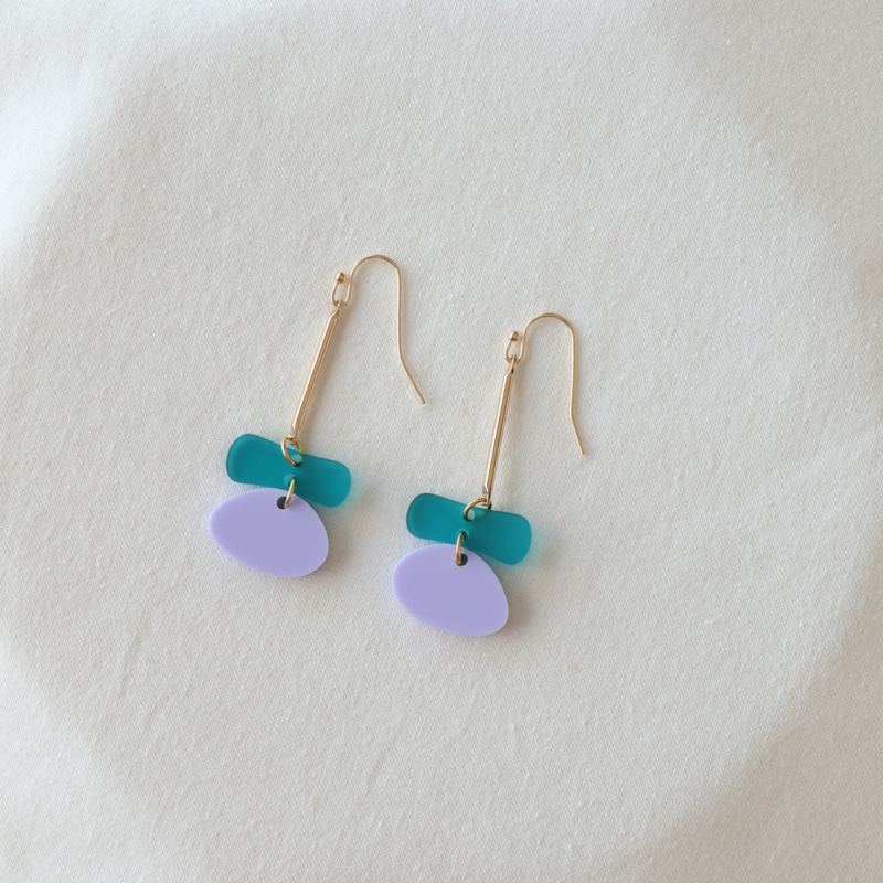 PUNCH.13∙ Lichtgewicht oorbellen in lila en appelblauwzeegroen